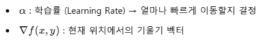 ✔ 기울기 벡터 방향으로 가면 함수 값이 증가하고, 반대 방향으로 가면 함수 값이 감소합니다.